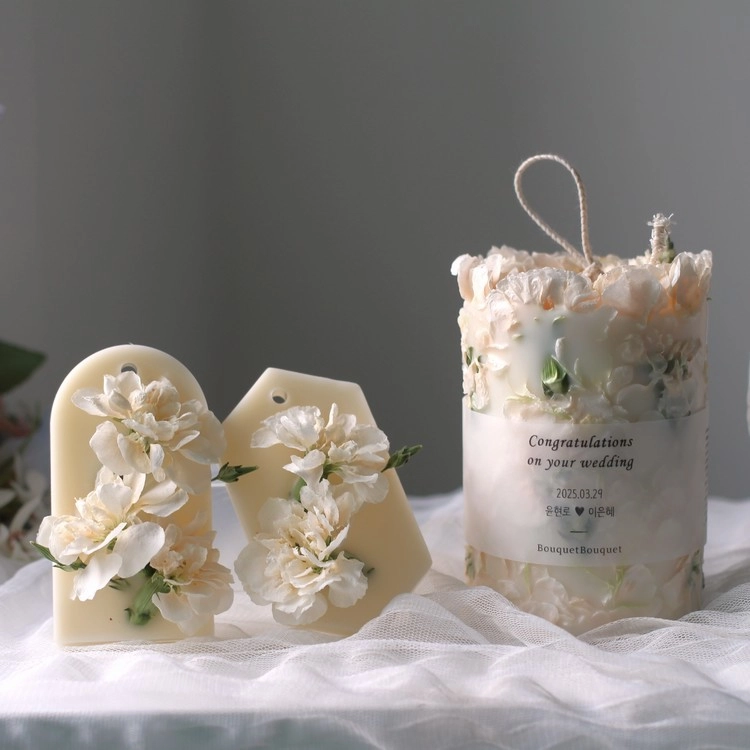 세트구성 선택 시 표시되는 금액은 건조 비용이 포함된 총 추가금액입니다. - 부케캔들 단품 : 70,000원 / 링홀더 40,000원 / 타블렛 15,000