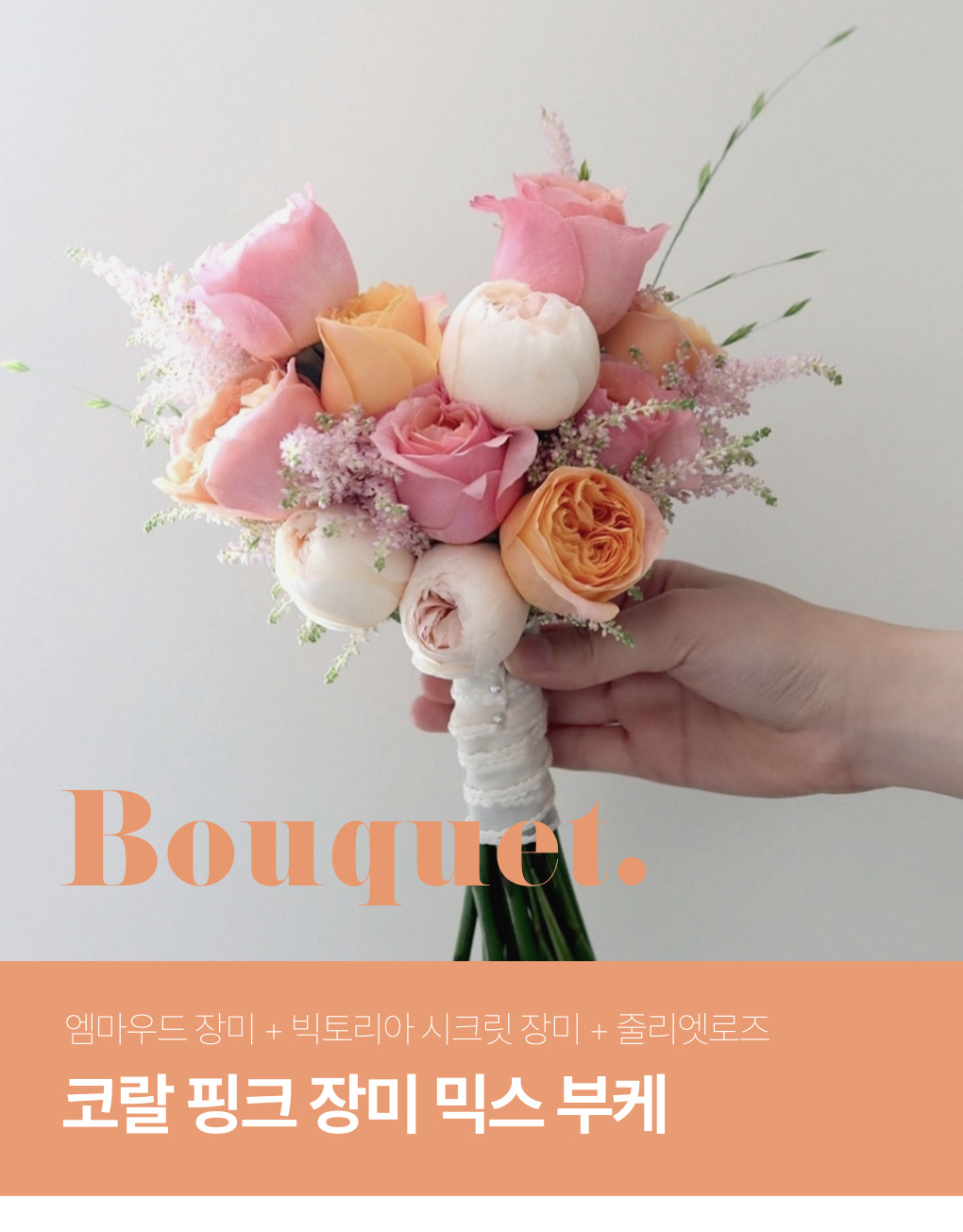 [bouquet] 코랄 핑크 장미 믹스 부케