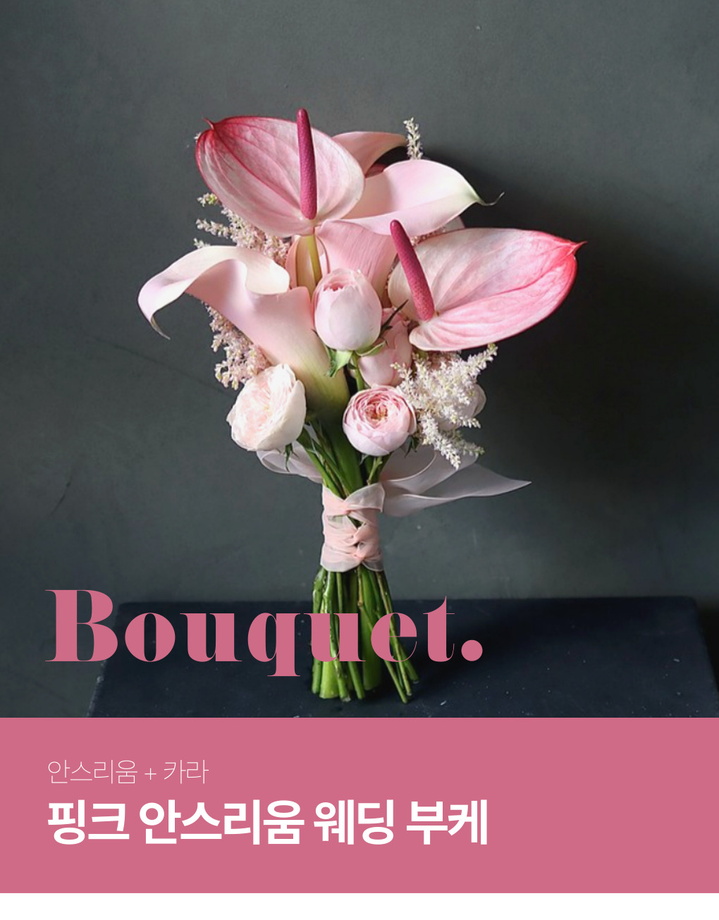 안스리움이 포인트로 들어간 사랑스러운 웨딩 부케